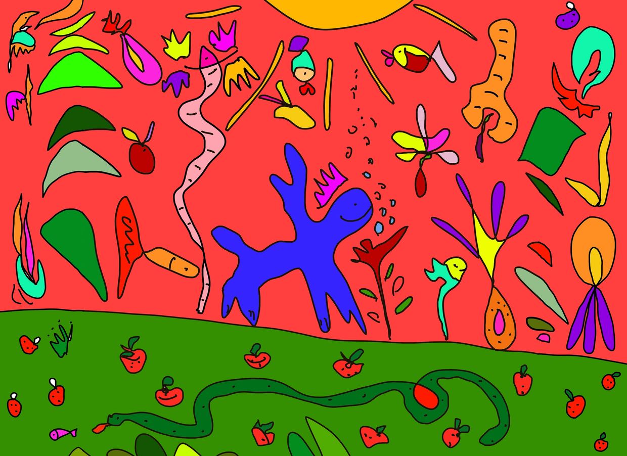 In the early images, the narrative reveals different stories, always immersed in an organic ecosystem where fruits, flowers, animals, and imaginary beings intertwine. Flying snails, crawling birds, and beings open to connecting with both the sky and the earth converge in a new universe, seen through a lens of heightened sensitivity.